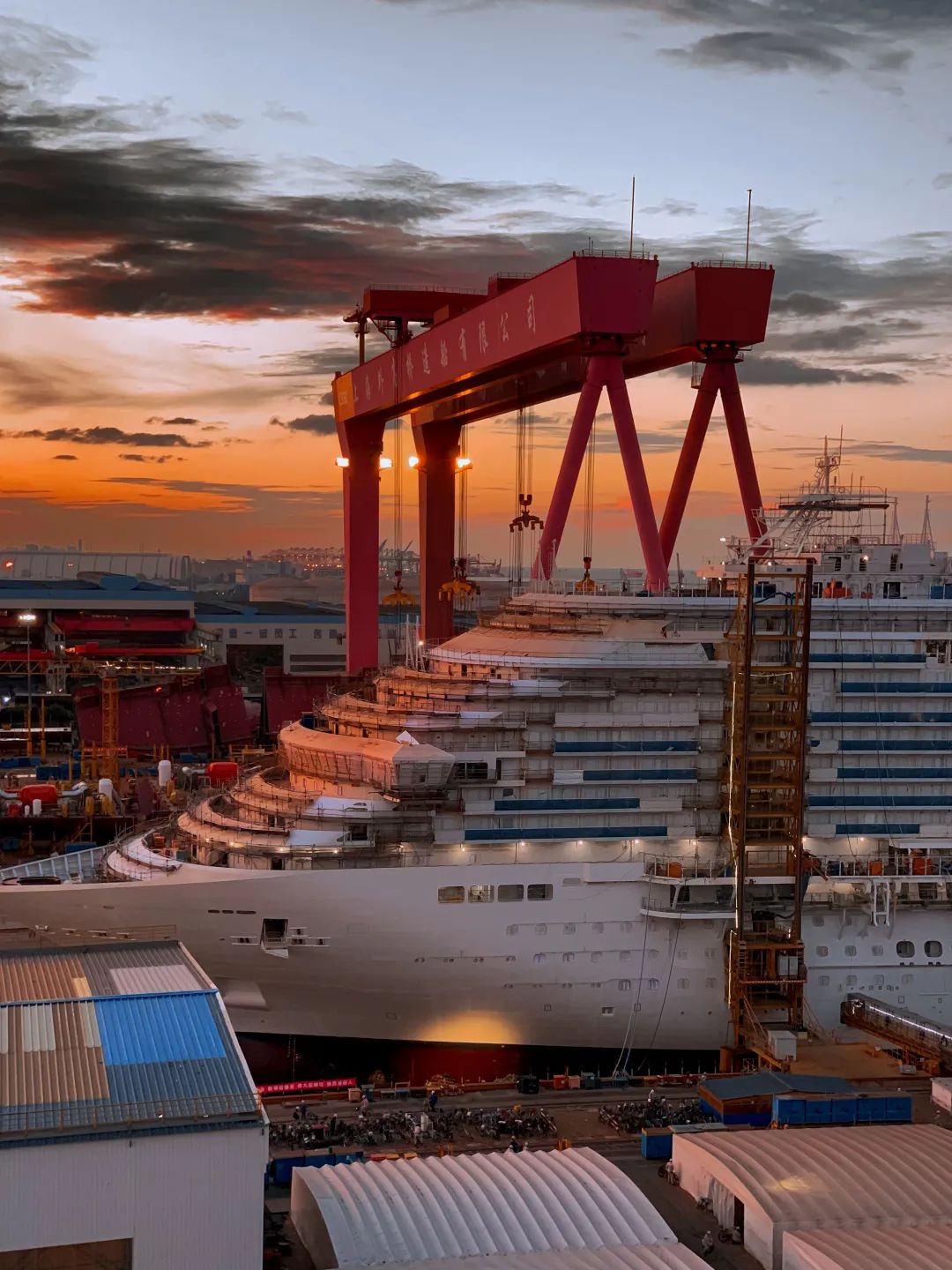 全力推進(jìn)大型郵輪設(shè)計(jì)建造是中國船舶集團(tuán)貫徹習(xí)近平總書記關(guān)于發(fā)展郵輪產(chǎn)業(yè)是利國利民重要指示精神、落實(shí)國家戰(zhàn)略、滿足人民美好生活需要的重大舉措,也是中國船舶工業(yè)轉(zhuǎn)型升級、提升中國制造在全球影響力的標(biāo)志性工程,能帶動中國郵輪全產(chǎn)業(yè)鏈快速崛起。同時(shí),對我國建設(shè)海洋強(qiáng)國、制造強(qiáng)國、科技強(qiáng)國將產(chǎn)生重大而又深遠(yuǎn)的影響,因此被列為中國船舶集團(tuán)的“一號工程”。2019年10月18日,備受世人矚目的我國首艘國產(chǎn)大型郵輪在中國船舶集團(tuán)旗下外高橋造船正式開工點(diǎn)火,全面進(jìn)入實(shí)質(zhì)性建造階段,標(biāo)志著中國船舶工業(yè)正式跨入大型郵輪建造新時(shí)代。2022年8月8日,第二艘國產(chǎn)大型郵輪開工建造,標(biāo)志著中國船舶工業(yè)已初步掌握大型郵輪設(shè)計(jì)建造關(guān)鍵核心技術(shù),在開啟“雙輪戲珠”新時(shí)代的同時(shí),向大型郵輪批量化、系列化建造邁出了具有里程碑意義的一步。