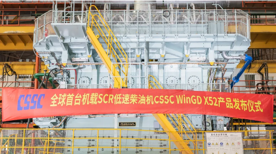 7月22日,由中國船舶集團有限公司旗下中船動力(集團)有限公司自主研發(fā)、大連船用柴油機有限公司建造的全球首臺機載SCR(選擇性催化還原系統(tǒng))船用低速機CSSC WinGD X52正式向全球發(fā)布。工信部黨組成員、總工程師田玉龍,中國船舶集團黨組副書記、總經(jīng)理楊金成出席發(fā)布儀式并講話。國家相關(guān)部委、地方政府、船級社、航運公司、造船企業(yè)等相關(guān)領(lǐng)導(dǎo)和專家出席發(fā)布儀式。