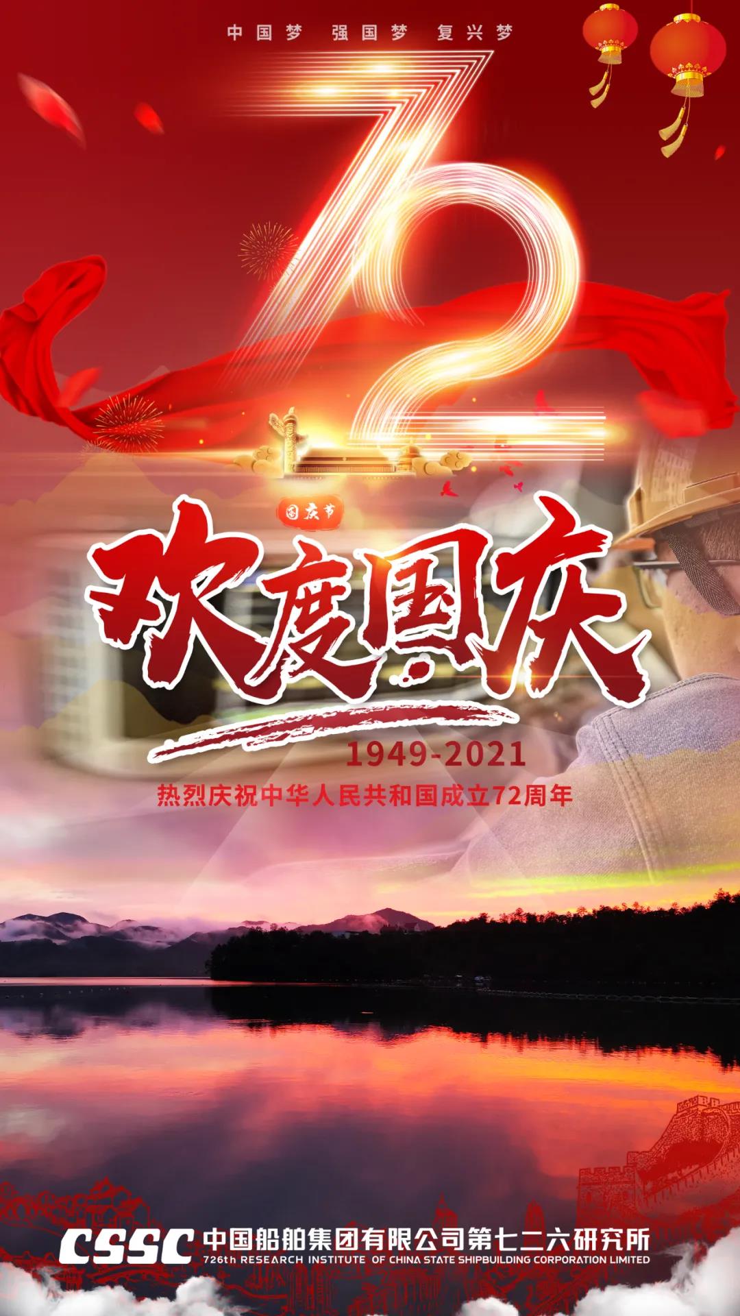 72年篳路藍縷,72年風雨兼程,正值建黨百年之際,恰逢新中國72周年華誕,中國船舶七二六所為祖國獻上最真摯的祝福!祝福偉大祖國繁榮昌盛!七二六人將繼續用智慧和汗水譜寫水聲華章,用創新和拼搏開拓新時代新征程,為建設海洋強國貢獻磅礴力量!