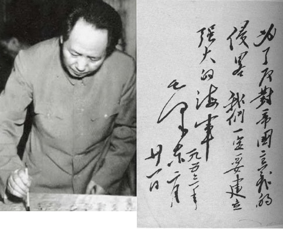 1953年,毛澤東同志視察“長江”艦,在艦上揮毫寫下“為了反對帝國主義的侵略,我們一定要建立強(qiáng)大的海軍”。