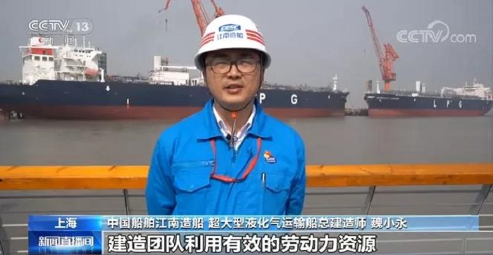 江南造船超大型液化氣運輸船總建造師魏小永:“為了保訂單搶進度,江南造船復工之后5艘大型液化氣體運輸船(VLGC)同時建造,我們排除萬難保節點,建造團隊利用有效的勞動力資源,緊盯每日計劃,大大壓縮了碼頭周期,系泊試驗試航周期,為提前交船打下了堅實基礎。”