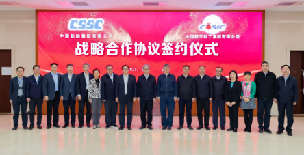 12月1日,中國船舶集團有限公司與中國航天科工集團有限公司在京簽署戰略合作協議。中國船舶集團黨組書記、董事長雷凡培,黨組副書記、總經理楊金成,黨組成員、副總經理錢建平,中國航天科工黨組書記、董事長袁潔,黨組副書記、總經理劉石泉,黨組成員、副總經理龔波出席簽約儀式。楊金成、劉石泉分別代表雙方在協議上簽字。
