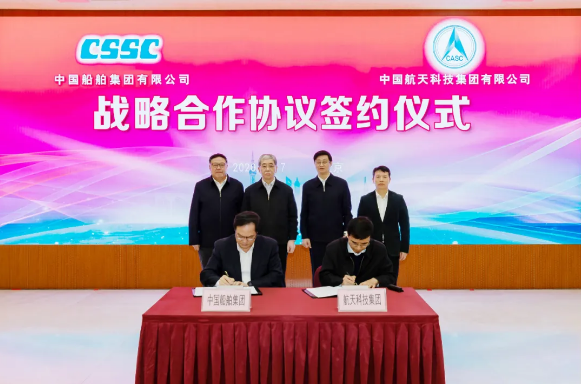 中國船舶集團(tuán)、航天科技集團(tuán)總部有關(guān)部門負(fù)責(zé)人參加簽約儀式。