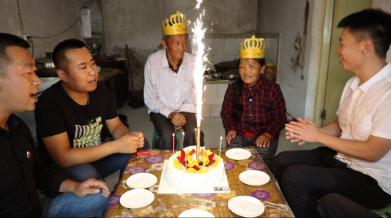 在翻查民情日志的時候,我看到了兩位老人家的生日。他們無兒無女,我便籌劃著給老兩口過一次生日。后經(jīng)支部研究決定,我們?yōu)槔蟽煽谶^了一個溫暖的生日。