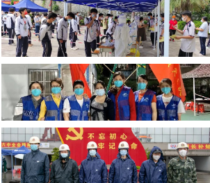 地處市區的廣州公司,迅速組建了一支以黨員為主的志愿者服務隊,助力所在社區(鶴園居委會)開展全員常規核酸檢測現場服務工作,以實際行動配合完成了6000多名居民核酸檢測任務。該公司職教事業部2所學校2000余名學生分轄荔灣、黃埔兩區,學校教職工主動作為,積極配合醫護人員維護現場秩序、信息登記、查核健康碼等,順利完成2輪全員核酸檢測工作。