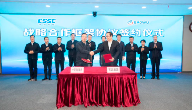 12月21日,中國(guó)船舶集團(tuán)有限公司與中國(guó)寶武鋼鐵集團(tuán)有限公司在上海簽訂戰(zhàn)略合作框架協(xié)議。中國(guó)船舶集團(tuán)黨組書記、董事長(zhǎng)溫剛,寶武集團(tuán)黨委書記、董事長(zhǎng)胡望明出席簽約儀式。中國(guó)船舶集團(tuán)黨組成員、副總經(jīng)理盛紀(jì)綱,寶武集團(tuán)黨委常委,寶鋼股份黨委書記、董事長(zhǎng)鄒繼新分別代表雙方在協(xié)議上簽字。簽約前,雙方就進(jìn)一步加強(qiáng)溝通交流、深化多領(lǐng)域合作進(jìn)行交流探討。