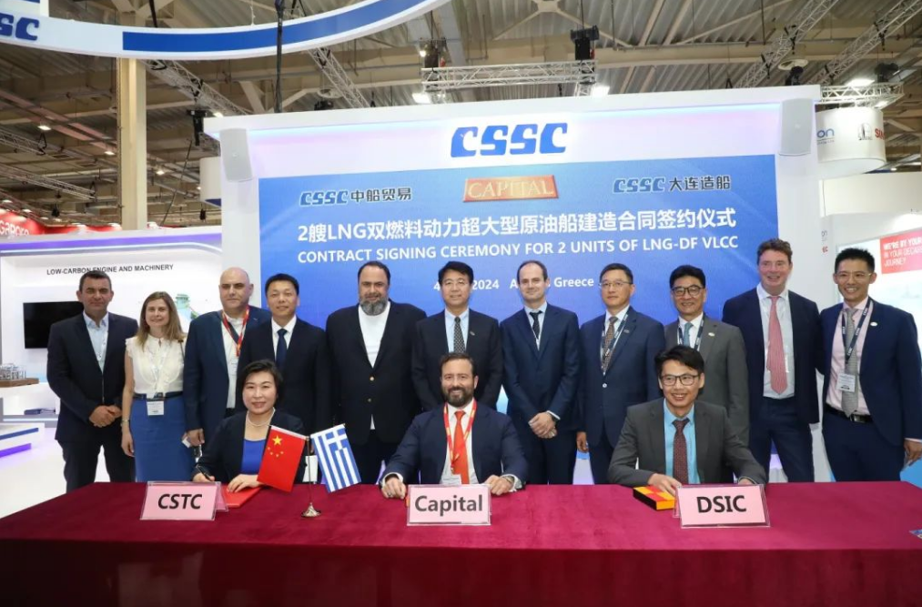 展會期間促成集團公司多家成員單位船海項目成功簽約,共計超50億元人民幣,包括中船貿易、廣船國際與EPS公司4艘11萬噸LRII型LNG雙燃料油輪項目簽約、與ASP公司2艘5萬噸MR甲醇雙燃料油輪項目簽約,中船貿易、大連造船與CAPITAL公司2艘30萬噸VLCC建造項目簽約,另外還簽訂了40多億元新造船項目意向書;同時,參展成員單位在集團公司展臺上開展了豐富的推介活動,包括江南造船“綠色船型家族”產品推介會、中船系統院“羅經進入光纖時代”產品推介會、七一一所“全球首個全流程船用碳捕捉系統案例分享會”,吸引了眾多國際船東、船級社和設備廠商前來觀摩,并共同探討未來合作機遇。