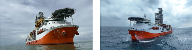 # 通過配置最先進的DP-3級動力定位系統(tǒng),自動調(diào)整船舶底部7臺推進器的轉(zhuǎn)向和推力大小,來抵抗海上風、浪、流作用在船上的載荷,使船舶在海上保持一定的水平位置;