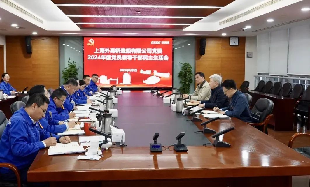 中船集團旗下外高橋造船黨委召開2024年度黨員領導干部民主生活會。集團公司黨組書記、董事長徐鵬到會指導并點評。