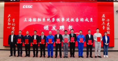 會上播放了《2020年上海船舶系統(tǒng)勞模、先進風(fēng)采錄》視頻,為12位勞模事跡巡講團成員頒發(fā)了聘書。按照計劃,勞模事跡巡講團將赴上海船舶系統(tǒng)的企事業(yè)單位進行宣講。