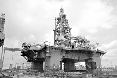 大連船舶重工集團(tuán)海洋工程有限公司建造的半潛式鉆修井平臺,標(biāo)注著中國制造新高度。本報記者 馮蕾攝/光明圖片