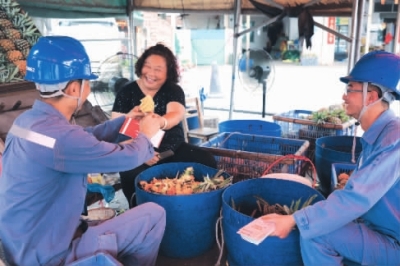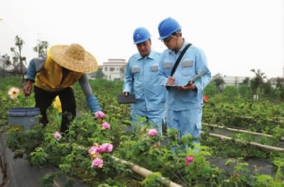 南方電網(wǎng)廣東中山小欖供電局員工向花農(nóng)宣傳安全用電知識(shí)