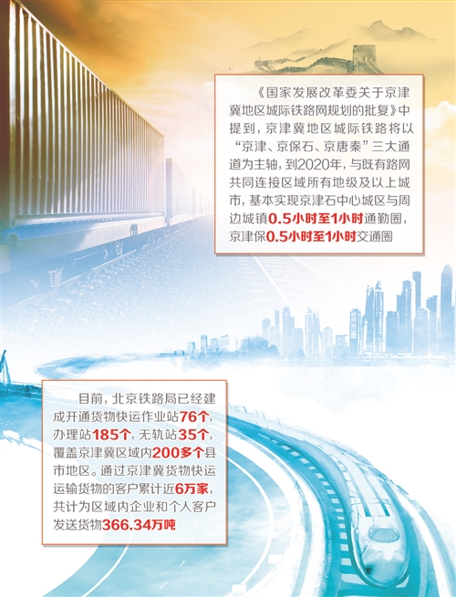 近年來,北京鐵路局先后開行了京津冀貨物快運列車、特快、快速和電商班列,打造了一批現代物流基地,提升改造了一批集裝化設施,為區域經濟發展提供了強大運力支撐和物流保障。