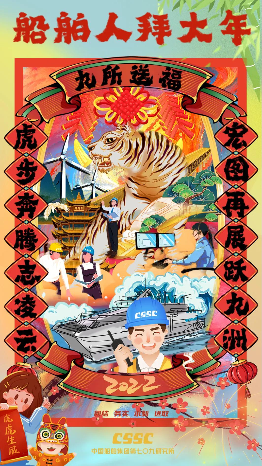 海報(bào)將船、潛艇、2022與“福”字巧妙地融為一體。“福”字中的船和潛艇,旨在致敬核潛艇精神、航母精神;“2”被設(shè)計(jì)成跑道形狀,代表著七六〇所要在2022年踔厲奮發(fā)、篤行不怠,為建設(shè)世界一流船舶集團(tuán)貢獻(xiàn)更多力量!