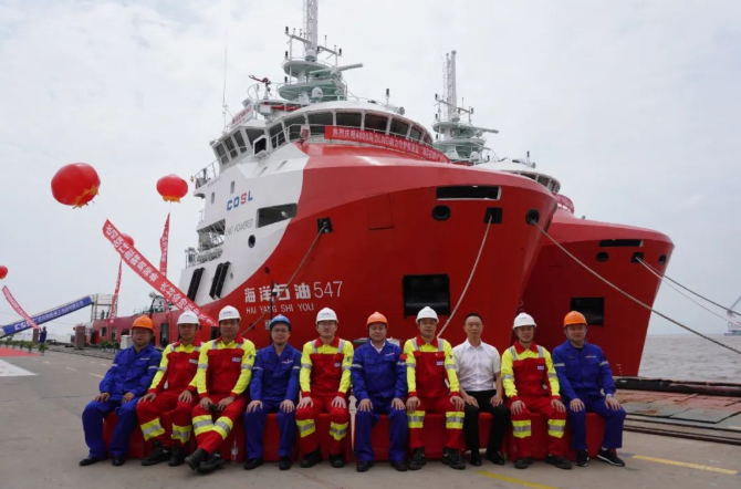此次交付的“海洋石油542”和“海洋石油547”船是專門為我國海洋石油開發(fā)提供支持服務(wù)的船舶,可為海上油氣開發(fā)提供值班守護、貨物運輸、救助以及對外消防等服務(wù)。該批船舶完全實現(xiàn)國內(nèi)設(shè)計、國內(nèi)建造,智能船舶系統(tǒng)、核心LNG儲罐及供氣系統(tǒng)、加注系統(tǒng)、主機、舵槳裝置均實現(xiàn)自主知識產(chǎn)權(quán)國產(chǎn)化,標志著我國綠色化、智能化海工船設(shè)計、建造能力達到國際一流水平。
