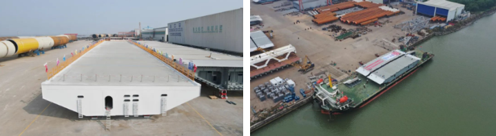 針對發運過程,武昌造船科學編制裝船運輸方案,自2023年1月7日伶仃洋大橋邊跨第一片鋼箱梁順利吊裝,到4月20日完成最后一片鋼箱梁吊裝,在104天的時間內,項目部圓滿完成了伶仃洋大橋全橋107個節段發運工作和現場配合吊裝工作,有力保證了伶仃洋大橋連續吊裝施工。