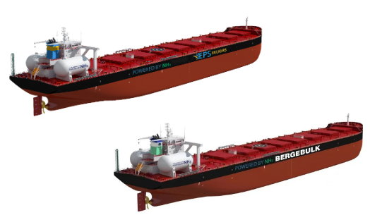 2月28日,北海造船聯(lián)合中船貿(mào)易與新加坡東太平洋航運公司(EPS)新簽4艘21萬噸Ammonia DF/DF Ready散貨船建造合同;2月29日,北海造船再次聯(lián)合中船貿(mào)易,與新加坡百國山航運公司(Berge Bulk)成功簽署2艘21萬噸Ammonia Ready散貨船建造合同。
