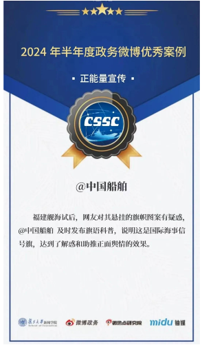 另外,日前2024上半年度政務微博影響力報告正式公布,@中國船舶獲評“全國十大國資央企微博”。@中國船舶通過創新傳播形式,讓權威性信息觸達民眾,提供高效高質的資訊和服務,為助力集團公司高質量發展注入動能。