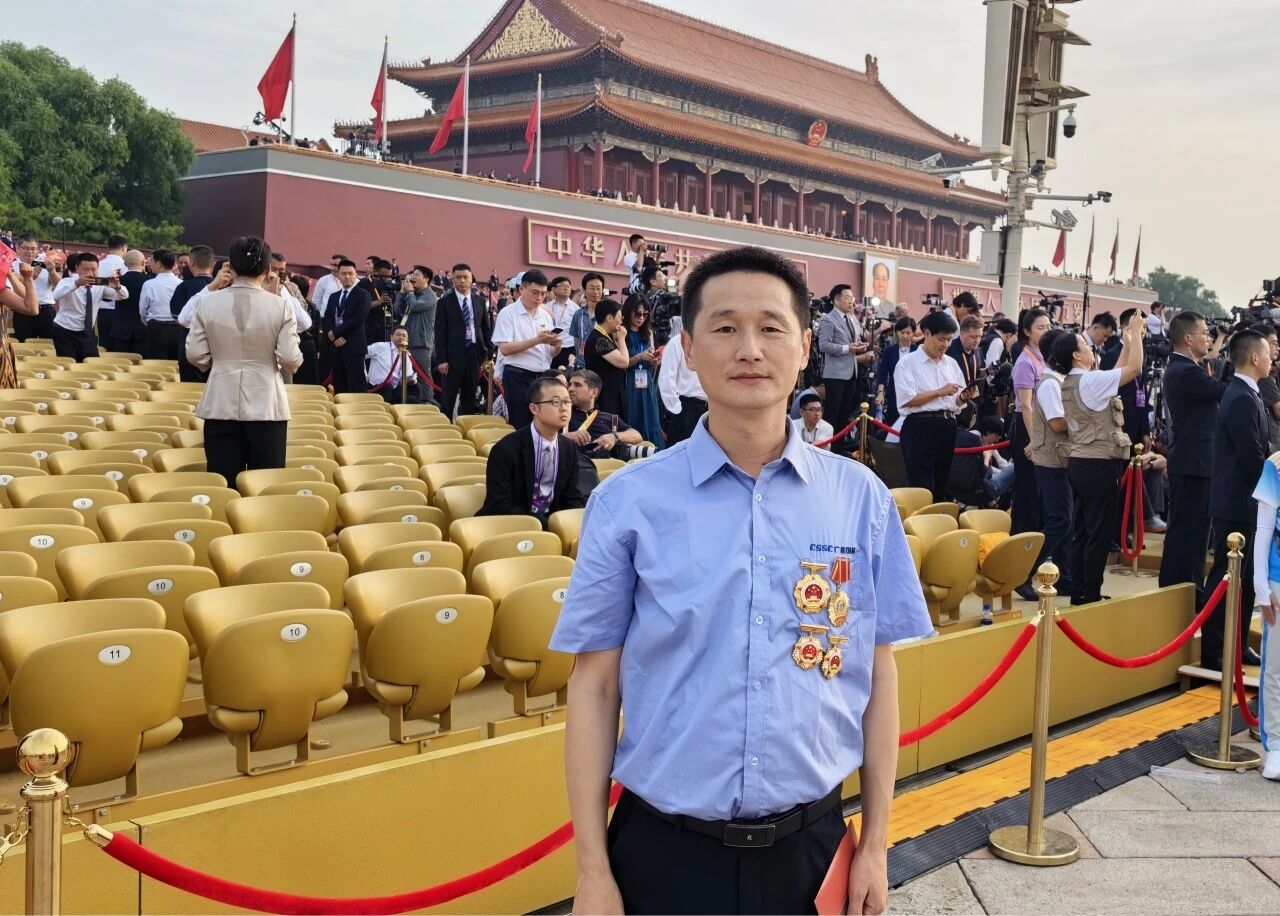 當(dāng)雄壯的《義勇軍進(jìn)行曲》奏響,五星紅旗冉冉升起,我情不自禁地起身肅立,與現(xiàn)場(chǎng)所有群眾代表一同高唱國歌。這一刻,跨越時(shí)空的民族記憶被瞬間激活,80年前先輩們?yōu)槊褡宕嫱鲈⊙獖^戰(zhàn)的壯闊畫卷仿佛在眼前重現(xiàn)。在閱兵分列式中看到了我們中船集團(tuán)研制的8型整裝裝備震撼出場(chǎng),接受黨和人民的檢閱,倍感榮光,背后是我們中船人的不懈努力和創(chuàng)新精神。