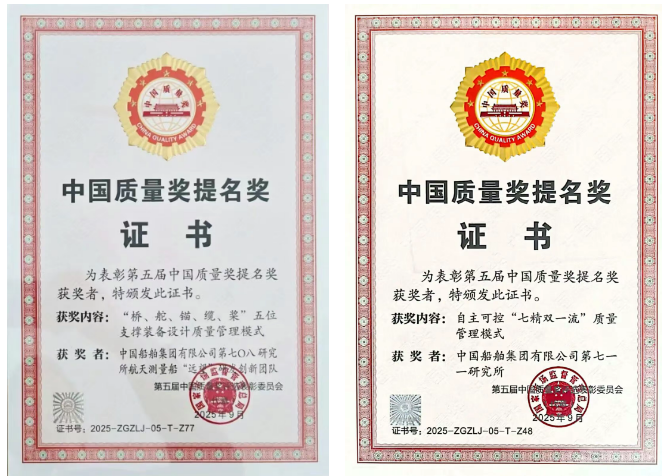 中船集團2家單位榮獲第五屆中國質量獎提名獎
