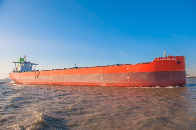????同日,中國船舶集團所屬外高橋造船建造的21萬噸散貨船“ATLANTIC DRAGON”輪(船號H1485)和“MARAN FIDELITY”輪(船號H1453)順利交付。這是外高橋造船自主設計的21萬噸紐卡斯爾型散貨船,分別入級法國船級社和美國船級社。紐卡斯爾型散貨船是外高橋造船的明星產品之一。外高橋造船已實現了產品的持續升級換代,船舶技術性能始終保持全球領先水平。這一代紐卡斯爾型產品的實測航速均明顯好于合同保證航速,深得國內外船東客戶的肯定。