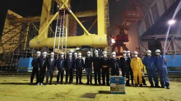 ????同一天,隨著最后一塊防沉平臺(tái)箱梁分段順利吊裝,黃埔文沖非船團(tuán)隊(duì)已經(jīng)連續(xù)奮戰(zhàn)十天十夜。至此,為保利長(zhǎng)大公司建造的明陽華西單樁穩(wěn)樁平臺(tái)主體工程