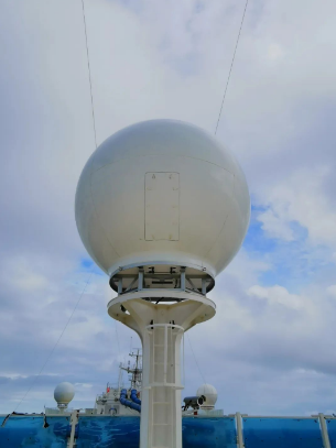站在煙囪下面往船艏方向看,正對著1個大球,前前后后,愛達·魔都號的頂部共有5個同款大球,它們分別用于收發(fā)來自衛(wèi)星的電視和網絡信號,船上“5G+WIFI”網絡系統(tǒng)和艙室的IPTV就是在它們的加持下才得以實現(xiàn)。