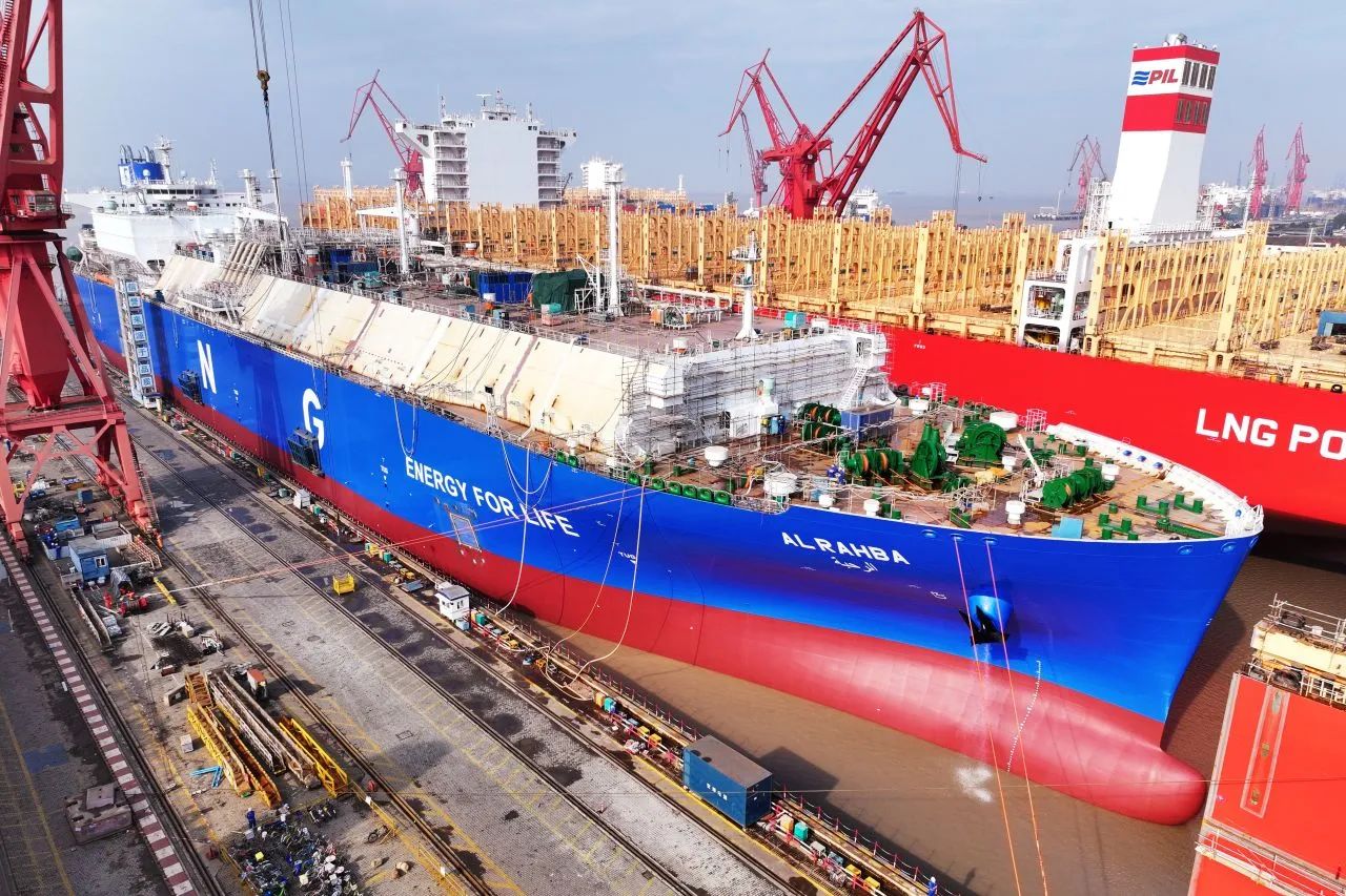 同步起浮的2艘半船是為新加坡太平船務(PIL)建造的14000TEU LNG雙燃料集裝箱船系列船第四艘的艏、艉半船。為了更好地進行船舶浮態對中,減少變形量,建造團隊開創了新的起浮方案,為后續集裝箱船樹立了半船起浮的新模式。
