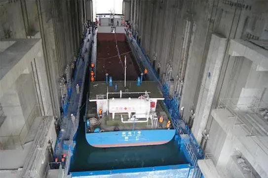 而在上述水電站過船設施工程建設中,也出現了中國船舶集團旗下院所、船廠、配套企業等相關單位的身影。烏江構皮灘水電站通航工程被視為貴州融入長江、通江達海的關鍵工程。該工程線路總長2306米,概算總投資29.51億元,設計通航標準為四級航道,最高通航水頭達199米,是世界上通航水頭最高、水位變幅最大的通航工程。