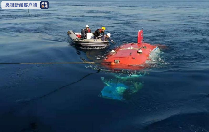 △“深海勇士”號(hào)結(jié)束水下作業(yè)回到水面