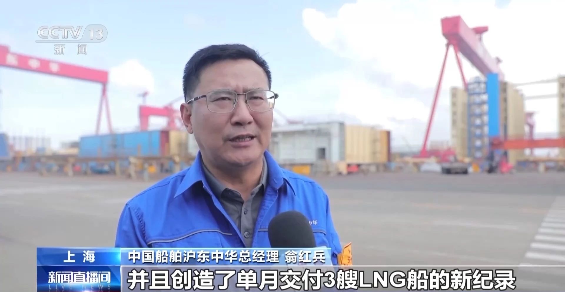 今年9月,在滬東中華造船廠,一個月就交付了3艘LNG船,創造了中國船舶建造史上單月交付的新紀錄。