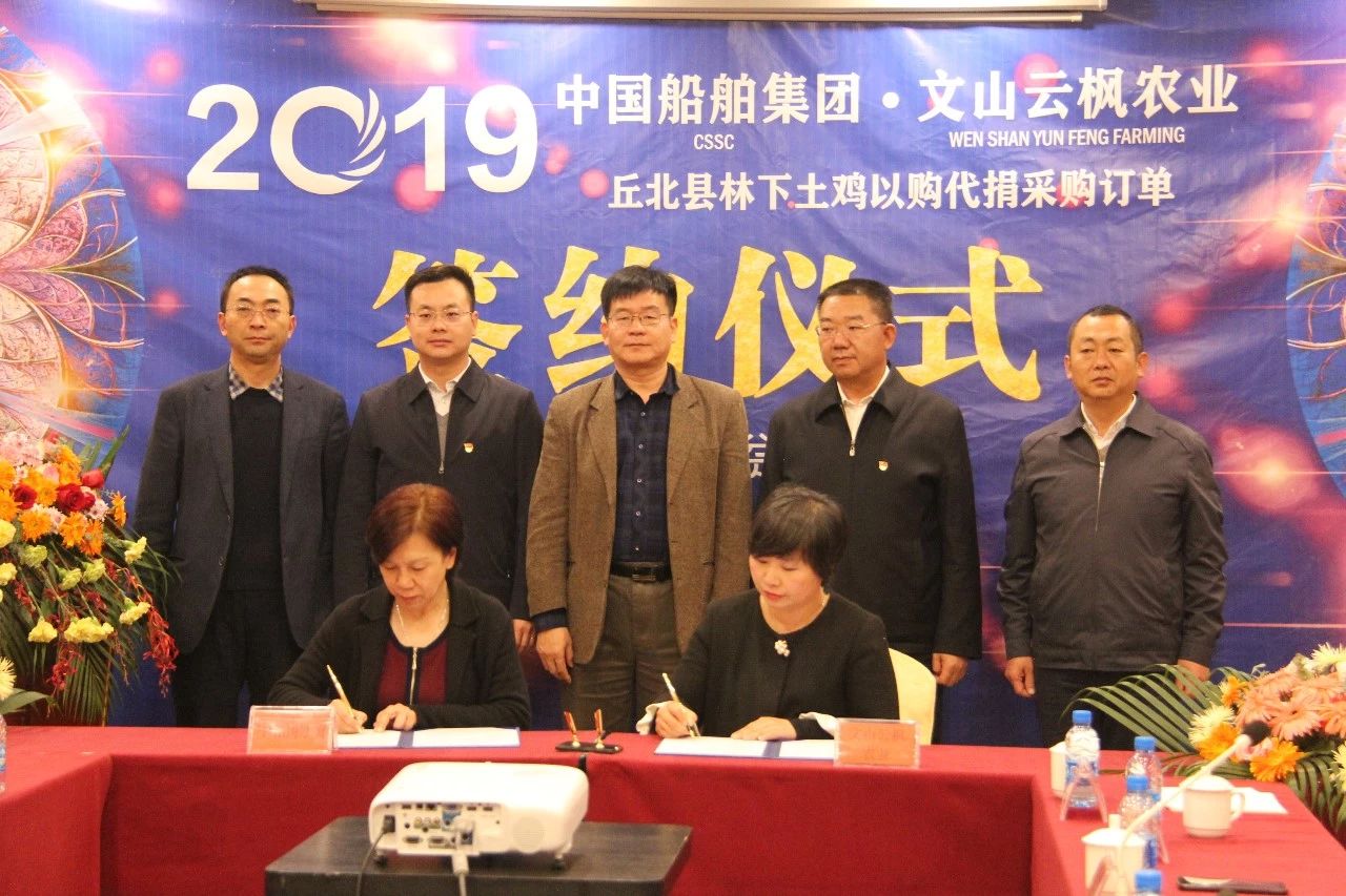 ????12月22日,中國船舶集團有限公司定點扶貧縣——云南省文山州丘北縣舉行中國船舶集團—文山云楓農業丘北縣林下養雞以購代捐采購訂單簽約儀式。中國船舶集團所屬中船物貿公司與云南文山云楓農業簽訂了價值約1000余萬元的10萬只土雞“以購代捐”采購訂單。中國船舶集團在丘北縣實施的10萬只土雞“以購代捐”項目,歷時7個月,進入全面收尾階段。