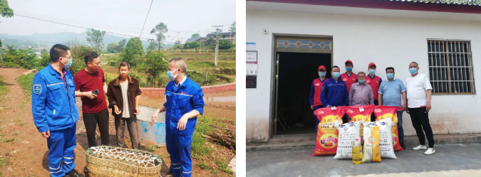 ????在前期走訪了解的基礎上,根據5戶家庭實際情況,重慶紅江精準制定幫扶措施,為生活困難家庭送去大米、食用油等生活物資,向有產業發展需求的家庭贈送雞仔100只、豬仔2頭、豬飼料3包、化肥8袋。